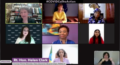“This conversation is critical”, said Rt. Hon. Helen Clark, PMNCH Board Chair and former Prime Minister of New Zealand, as she opened the first panel of women leaders. “Two months ago, we gathered for the first lives in the balance summit to discuss early projections of the impact of COVID-19 on women, children and adolescents, …the projections have turned into testimonies.”