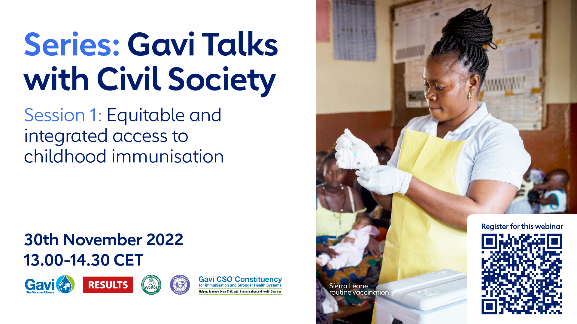Gavi in collaboration with the Gavi CSO constituency, Results UK, Women Advocates for Vaccine Access (WAVA) and the Child Health Taskforce are organising a series of Live Talks with CSOs and partners to demonstrate the successes and challenges faced by countries to reach equitable access to vaccines through different stages of the life course including childhood, adolescence and adulthood. The Series will particularly look at the role of civil society and local partners in building social and political commitment to immunisation.