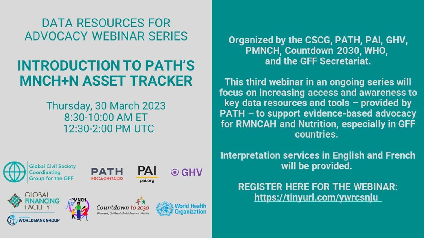 Webinar #3 on Introducing PATH's Maternal, Newborn, Child Health & Nutrition Asset Tracker
