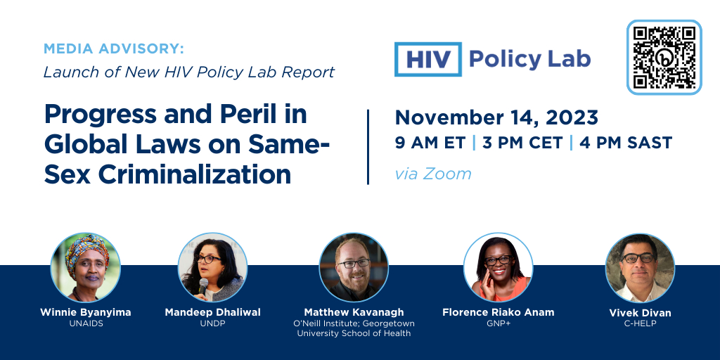What: An embargoed media briefing of “Progress and the Peril: HIV and the Global Decriminalization of Same-sex Sex,” the new HIV Policy Lab report which reviews the state of laws criminalizing same-sex sex across 195 countries
