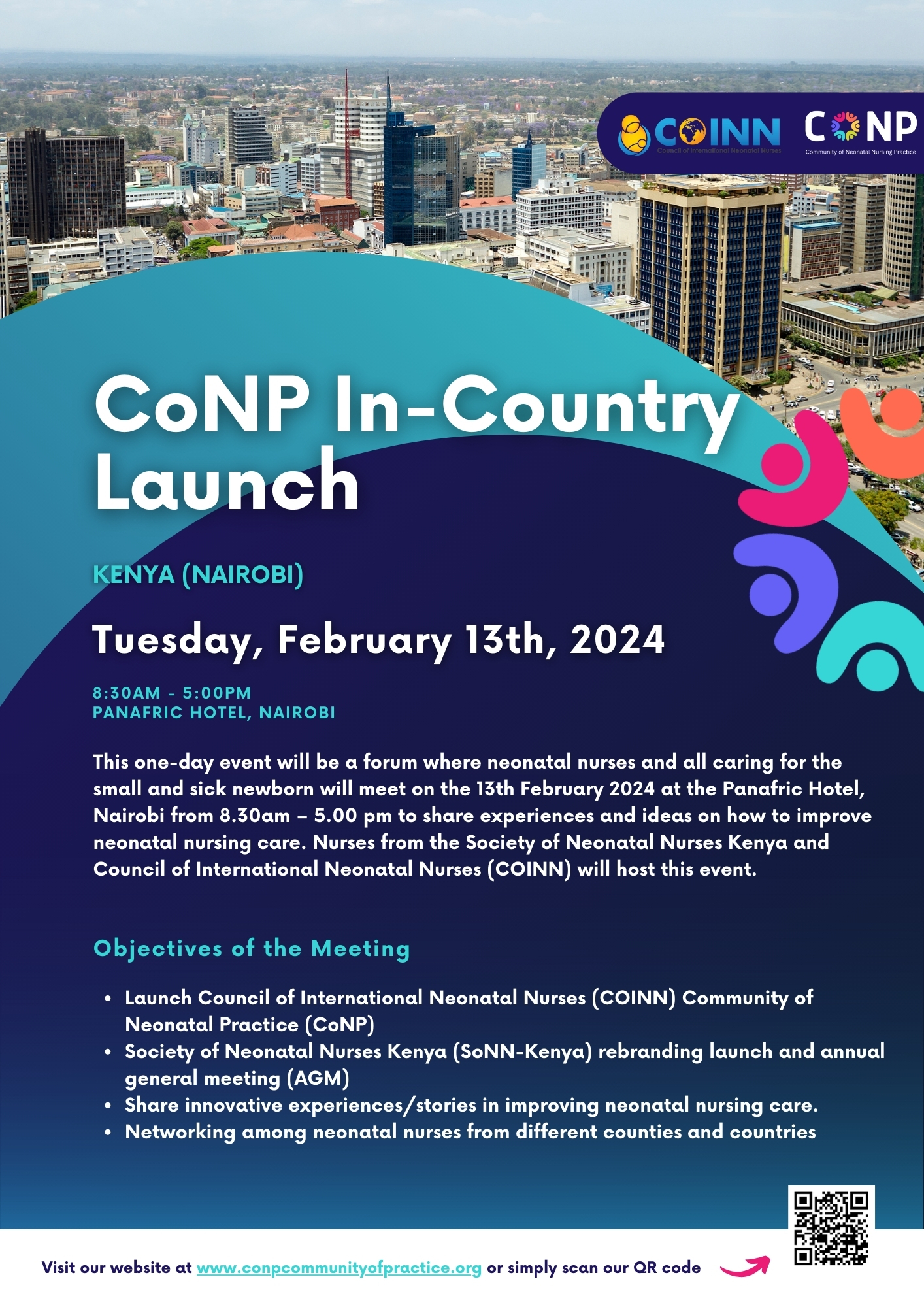 This one-day event will be a forum where neonatal nurses and all caring for the small and sick newborn will meet on the 13th February 2024 at the Panafric Hotel, Nairobi from 8.30am - 5.00 pm to share experiences and ideas on how to improve neonatal nursing care. Nurses from the Society of Neonatal Nurses Kenya and Council of International Neonatal Nurses (COINN) will host this event.