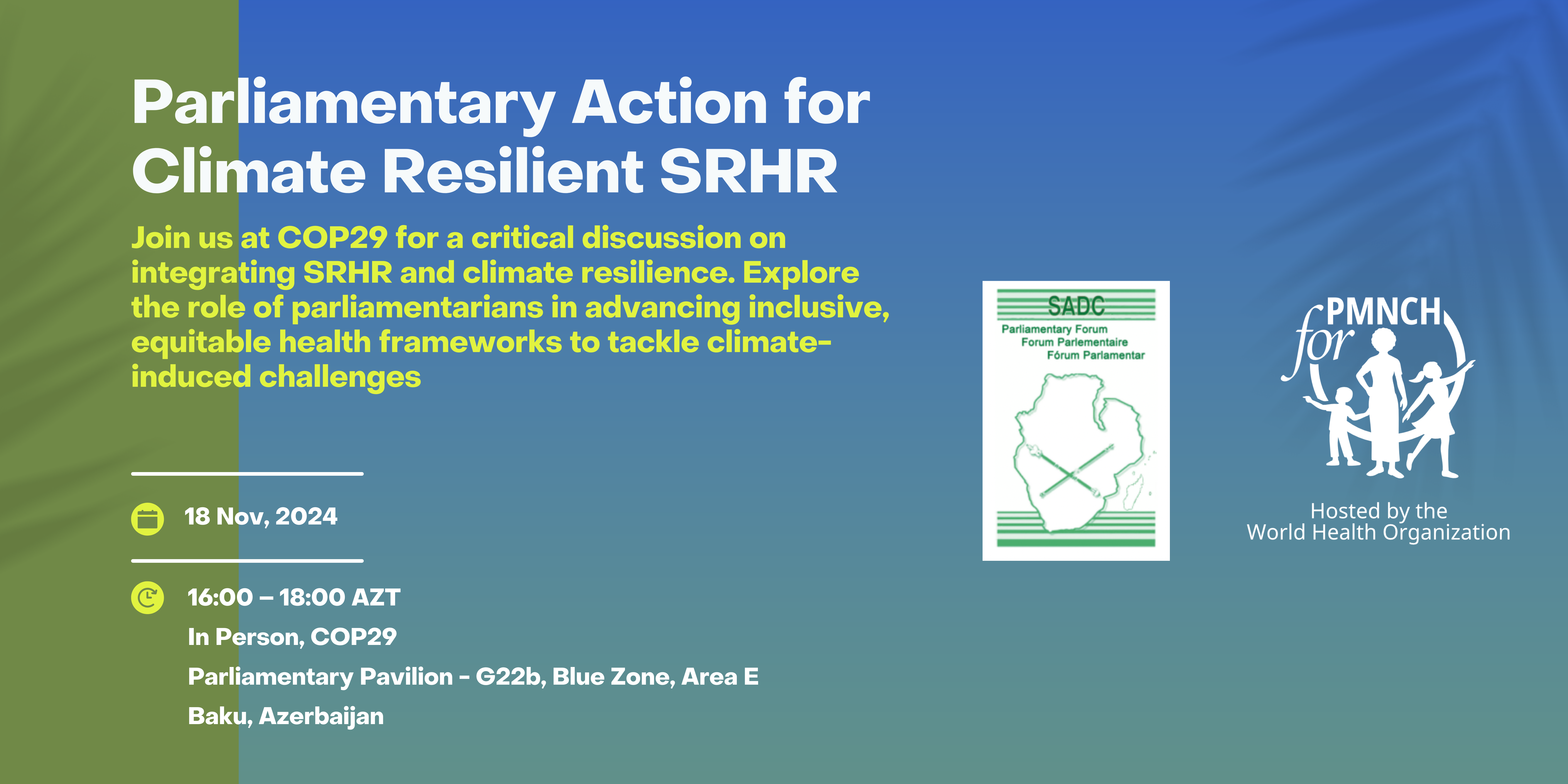 Parliaments are central to upholding these rights and in ensuring that climate change interventions are inclusive and responsive to gender and SRHR. Health Day at COP29 presents an opportunity for parliaments to spotlight and interrogate the intersection of climate change and SRHR, highlighting the necessity for gender-responsive interventions.