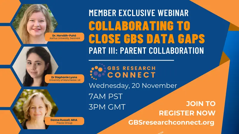 GBS Research Connect is hosting Part III of our Collaborating to Close GBS Data Gaps series on Wednesday, 20 November at 7AM PST | 3PM GMT. We invite those of you involved with the long-term effects of infection in babies or other aspects of group B strep (GBS) to join us (individual memberships are free) and register to learn about the very important efforts of our presenters to identify the overall effects of GBS disease and provide support for those affected.