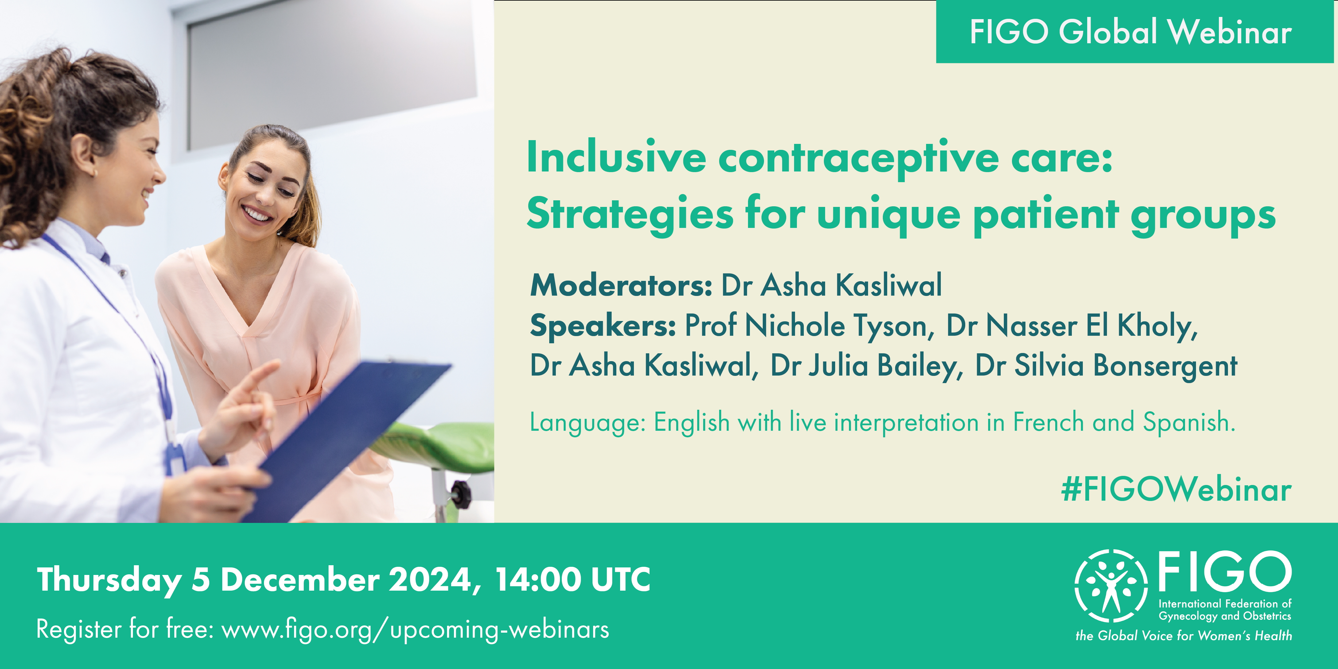 Led by the FIGO Committee on Contraception, this webinar will provide healthcare professionals with evidence-based guidance on contraception for unique patient groups. Speakers will discuss contraceptive care for adolescents, patients with cardiac conditions, women over forty, transgender and non-binary individuals and women living with HIV. Contraceptive choices, strategies and special considerations for these groups will be explored. Clinicians will leave the webinar with a comprehensive understanding of the latest recommendations and practical tools, ensuring that expert respectful, relevant and inclusive contraceptive care is given to all patients regardless of their age, cardiac conditions, gender identity and HIV status.
