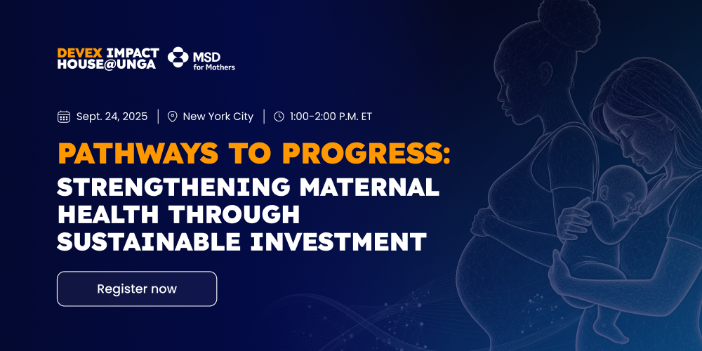 Pathways to progress: Strengthening maternal health through sustainable investment is a high-level discussion hosted by Devex in partnership with MSD for Mothers. This session will spotlight the role of sustainable financing in driving improvements in maternal health outcomes. We’ll examine how to turn commitments into action: within the broader context of the U.N. General Assembly’s emphasis on domestic resource mobilization and coalition-building.
