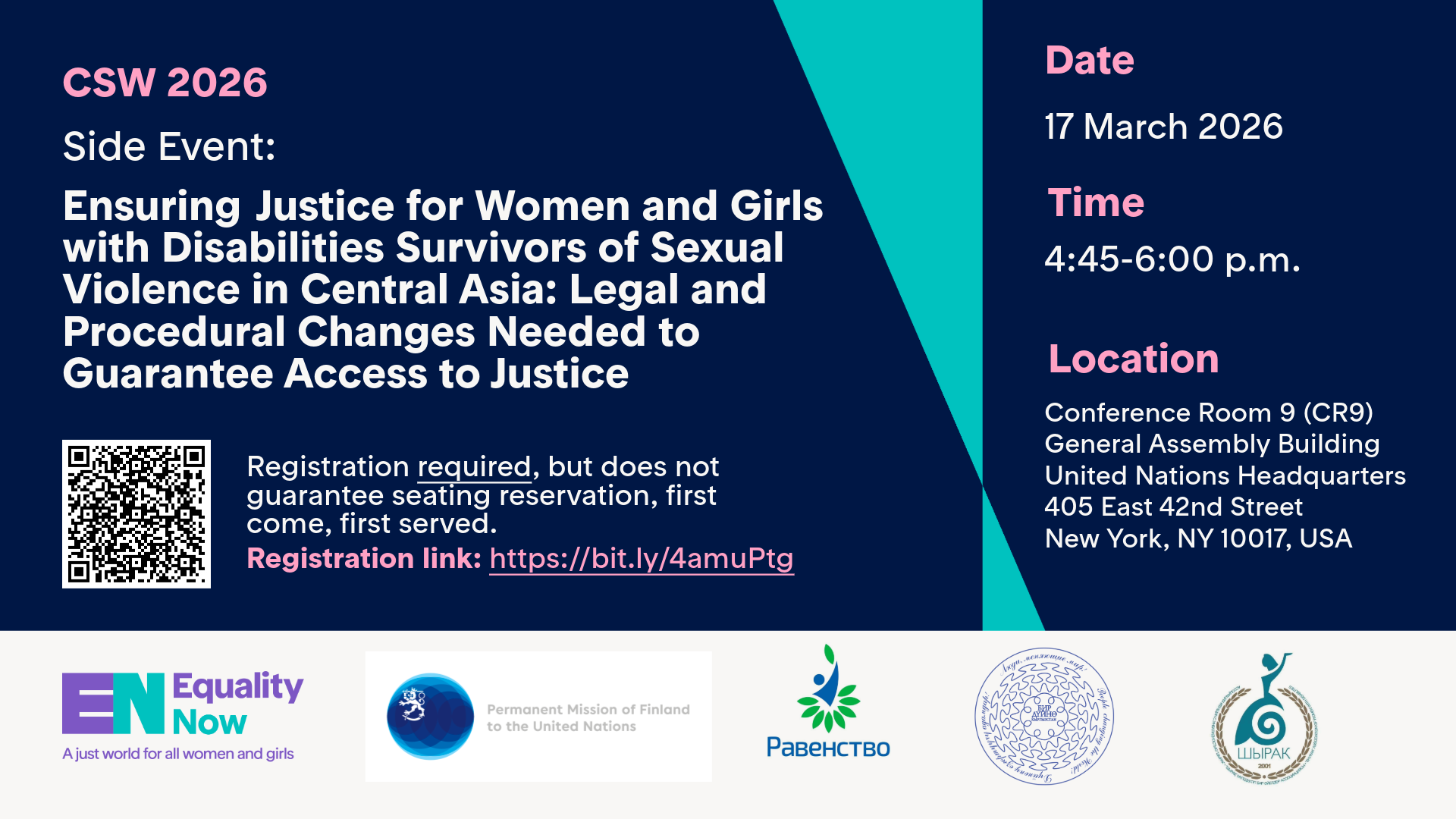- Share key findings from Equality Now's 2025 report Seeking justice: Sexual violence against women with disabilities in Kazakhstan, Kyrgyzstan and Uzbekistan